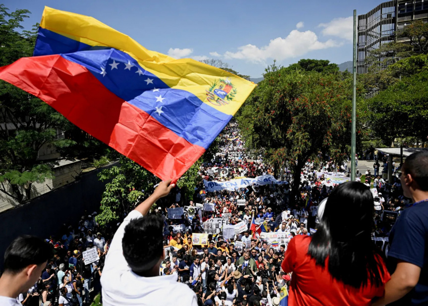 Venezuelan students and relatives of prisoners mark Youth Day with march for political amnesty, in Caracas. (Photo/Reuters)
